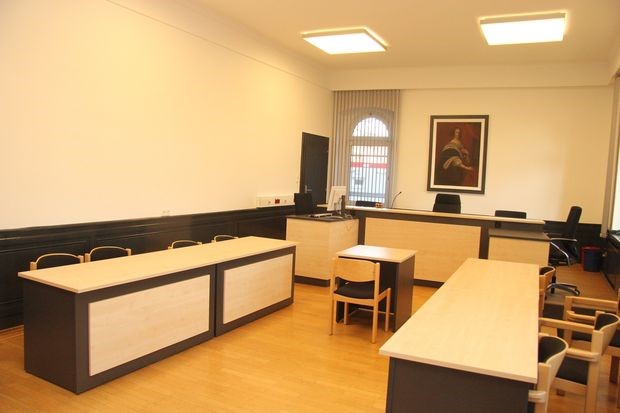 Der Blick aus der Besucherperspektive in den Gerichtssaal 5 im Amtsgericht (Friedrich-W. Armbrust)